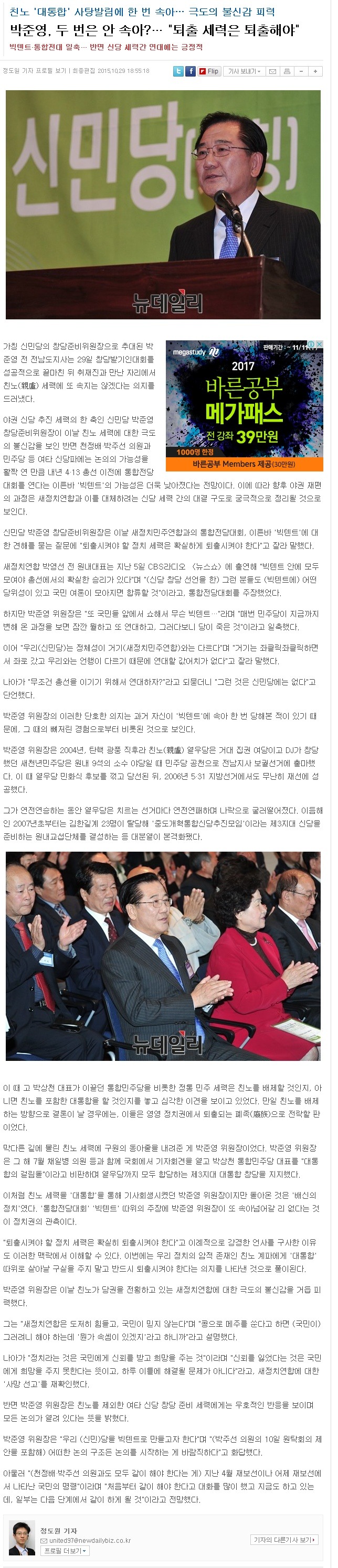 ●박준영신당 친노의 두번속지않는다 .,퇴출세력은 퇴출해야..