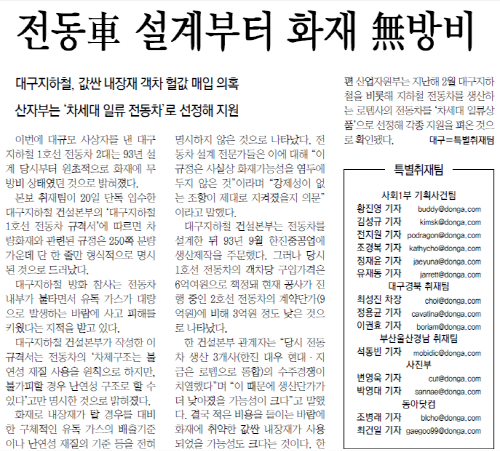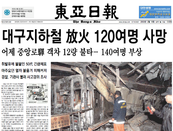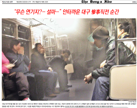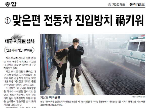 * 사진은 대구지하철 참사 희생자 대책위원회에서 제공한 것입니다. 신문 스크랩은 동아일보 2003년 2월 19일자부터 23일자입니다.