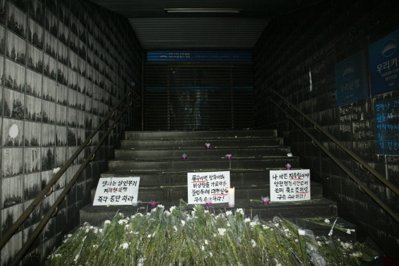 "그때까지도 재미있었다고 생각했습니다. 묘한 흥분이 몰려 왔습니다." 류호정씨는 지니고 있던 디지털카메라를 꺼내 사진을 찍었다. 1080호의 3호차에 있던 승객들은 밖으로 나가야할 이유도, 앞으로 닥쳐올 대참사도 전혀 예견하지 못했다. 참사 1주기 추모 사진집 중에서