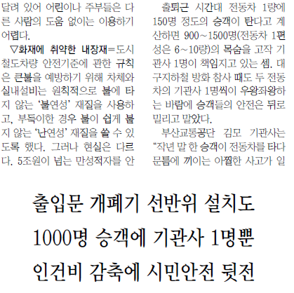 사고 희생자의 대부분은 여성과 노약자였였습니다. 허술하게 관리되는 대중교통의 위험이 결국 우리 사회 약자에게 돌아간다는 것을 보여준 것입니다.