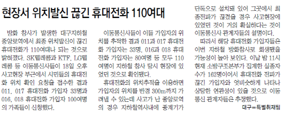 사고도 참혹했지만 대구지하철참사가 우리를 더 통렬한 슬픔에 빠지게 한 건 불지옥에서 걸려온 희생자들 휴대전화였습니다.