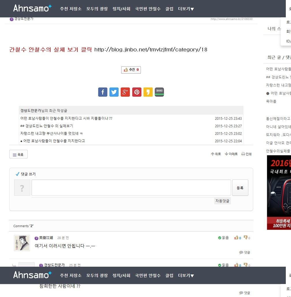 팬사이트 까지 와서 간철수안철수의실체를모르고